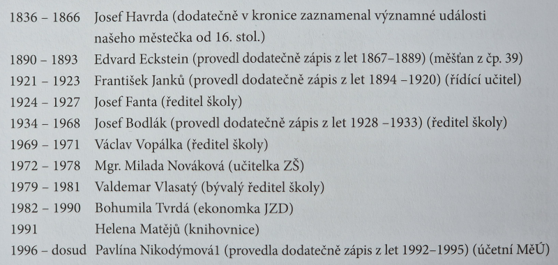 - 1996 – 2012 kroniku vedla Pavlína Nikodýmová